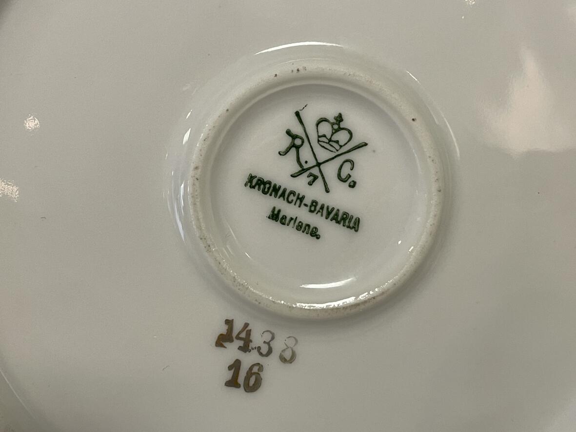 Marke: an der Unterseite unterglasurgrün aufgestempelte Marke mit gekreuzten Stäben mit Krone darüber und "R.", "C" und "7" und darunter "KRONACH BAVARIA Marlene"