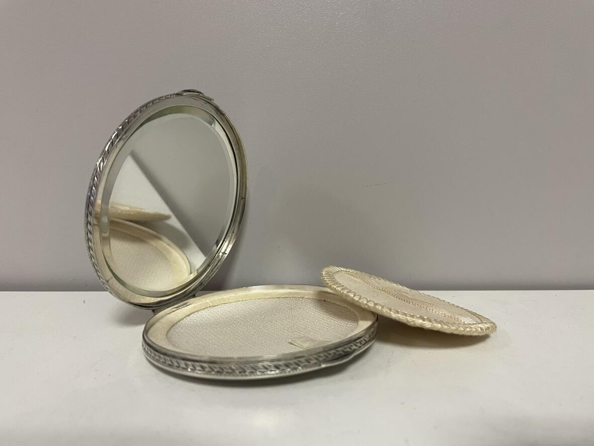 Aufschrift außen am Deckel ,, Für großen Mut 1.10.1952 " innen Spiegel und Pad