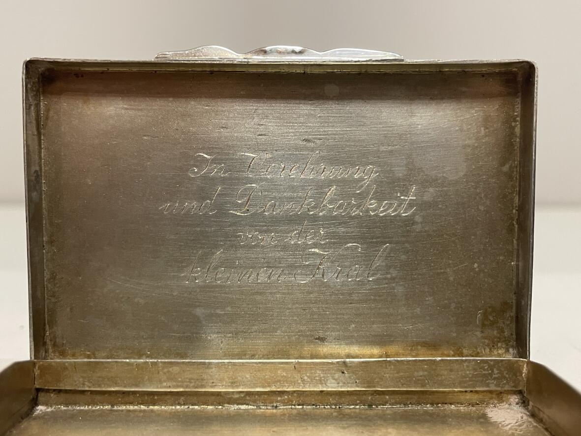 Gravur an Innenseite des Deckels ,, In Verehrung und Dankbarkeit von der kleinen Kral "