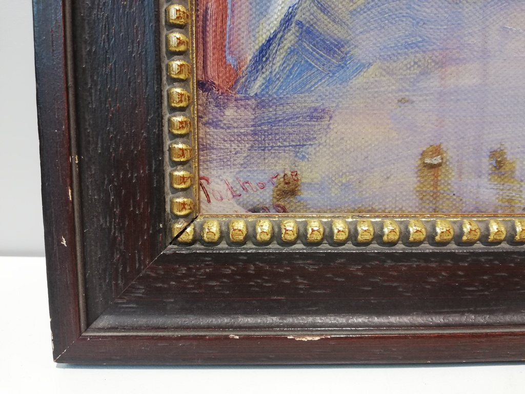 20.Jhdt. Öl auf Papier, das Leinwandstruktur eingeprägt hat