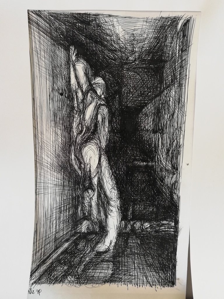 20.Jhdt. Tuschzeichnung, Blattgold rahmen