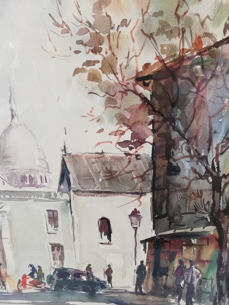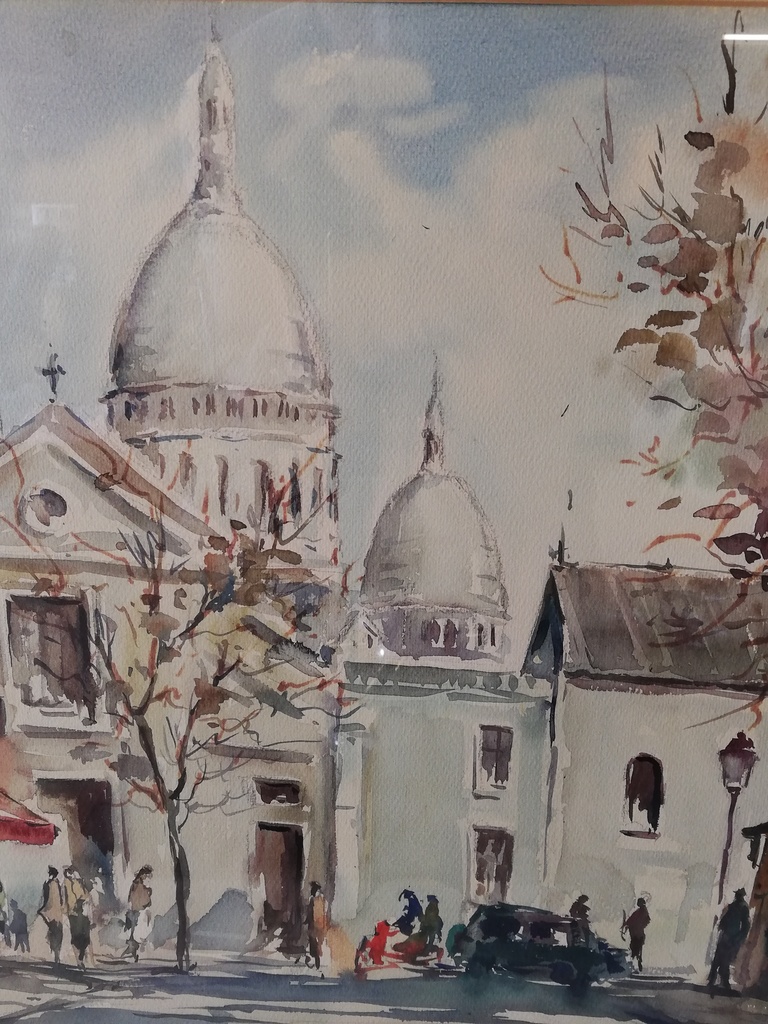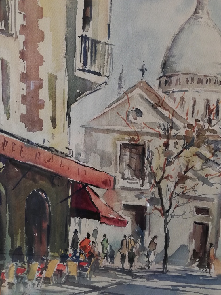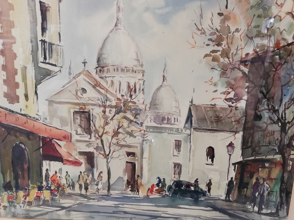 Motiv: Kirche am Montmartre in Paris, eventuell links Kaffeehaus