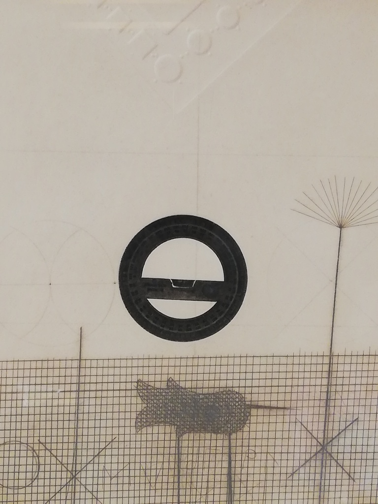 Motiv: Lineal und Dreieck darüber in Prägedruck, unten Raster mit Geometrischen Motiven