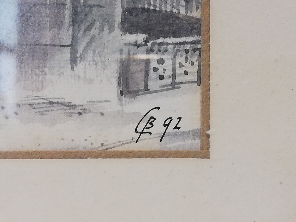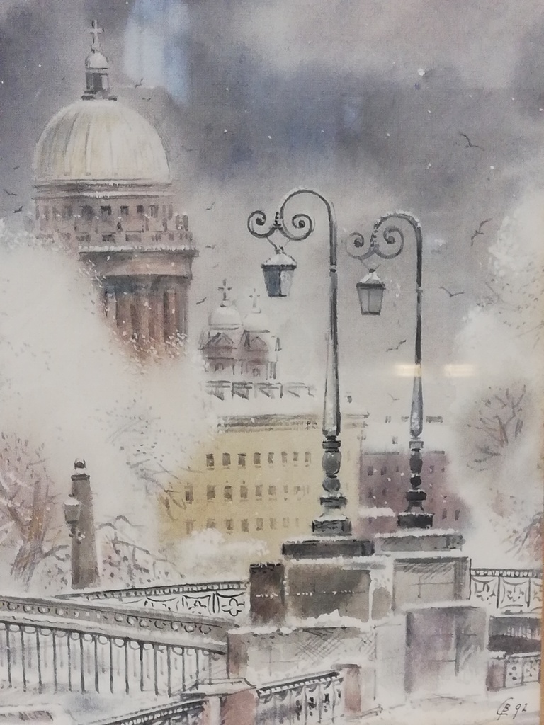 20. Jhdt. Aquarell auf Papier, Winterliche Stadtansicht mit Kuppel ,